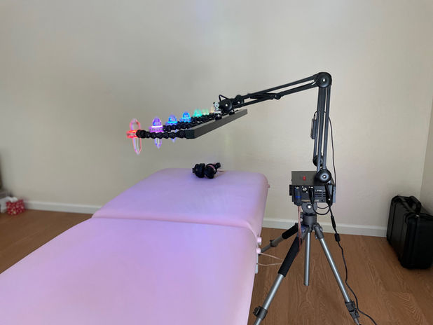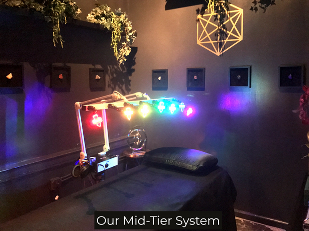 Our Infrared LED system is a breakthrough in vibrational medicine. Unlike normal infrared LED's, our system seamlessly integrates the color into the scalar energy for faster and more effective results. The LED's can pulsate with music for even better entrainment of the body's natural rhythms. Each bright 3 watt LED has the ability to dim, so you can customize your experience to the perfect level of brightness.